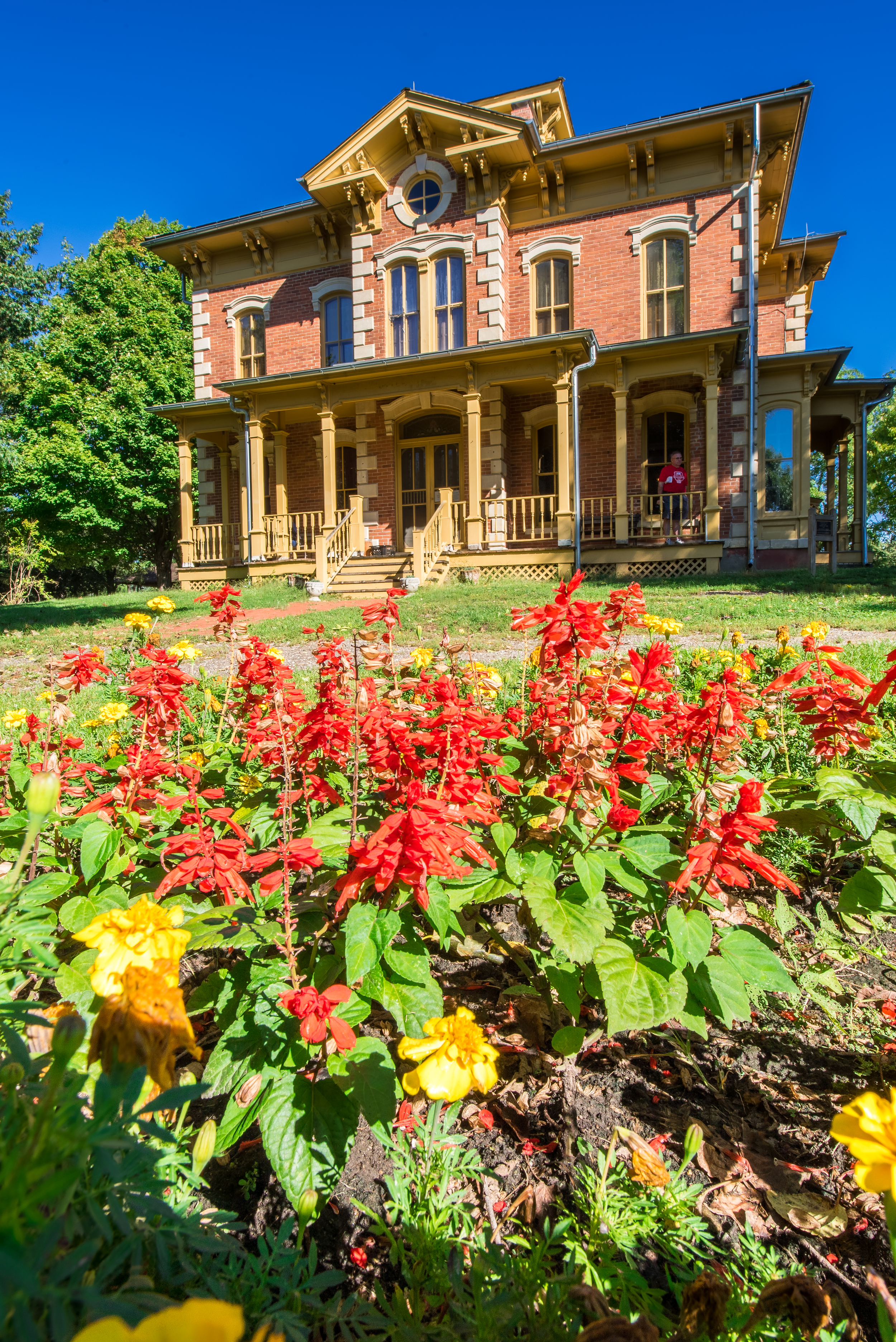 Showing the flowers in the foreground with the mansion in the background is neat!