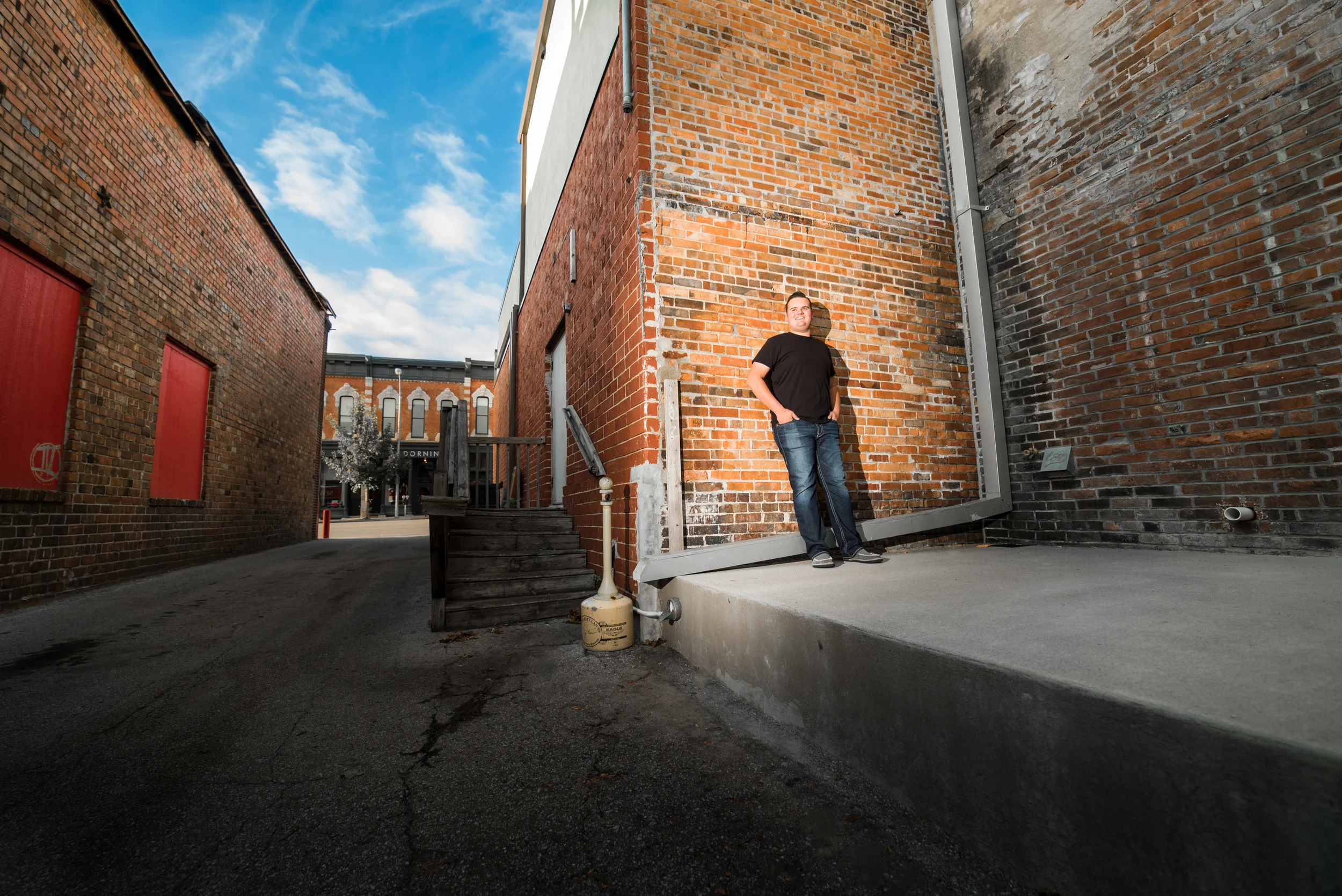 I arrange portraits with this lens in a similar way. I get low to make the person seem important, powerful, and dominant in the frame. They will break the horizon line with their body making them seem even taller. I may put something in the foreground to lead the viewer’s eyes to the person. The portrait is done in the mid-ground, and the background is a sunset, nature, or cityscape to add to the photo’s epic feel.