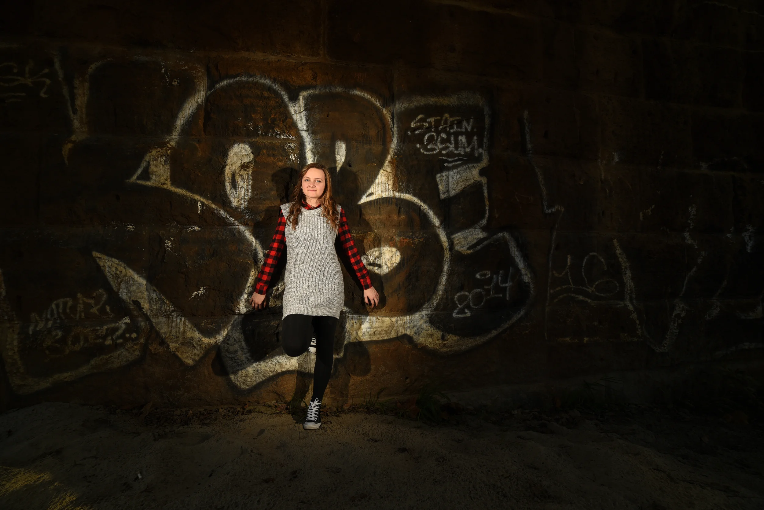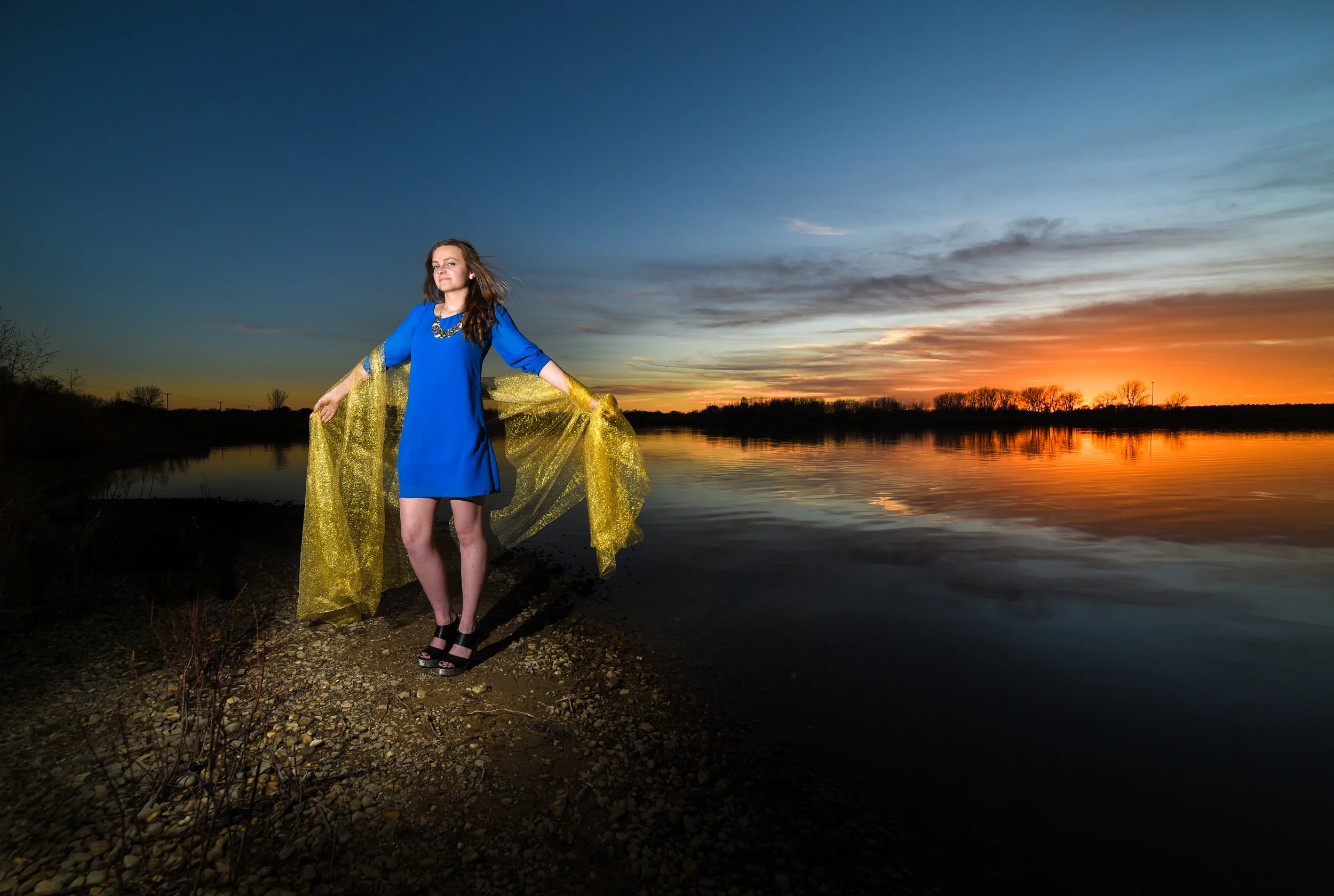 My flashes didn't fire once during the shoot, and I ended up with a silhouette that she liked. So, I went for a more purposeful shot with her centered in a silhouette.